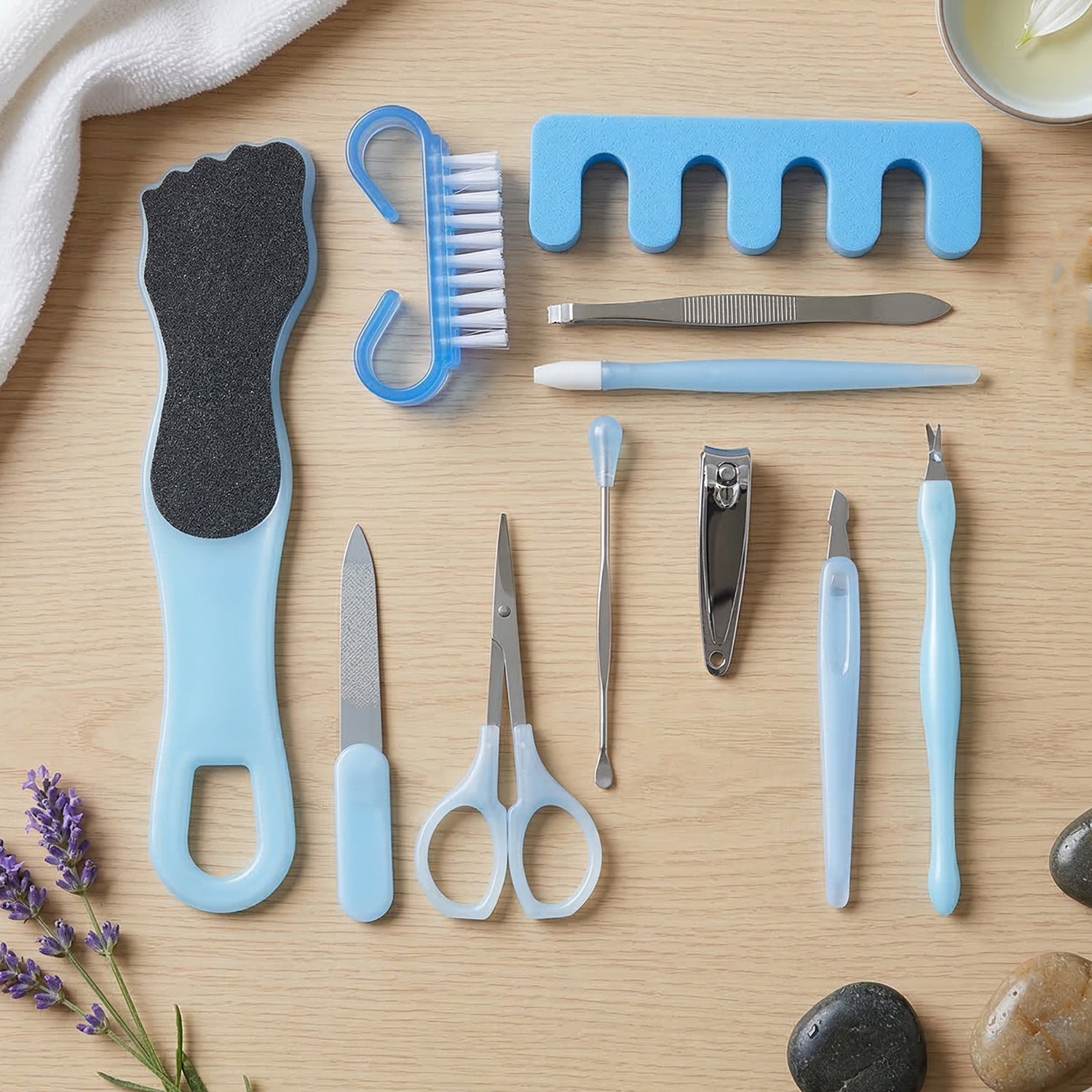 Maintain clean, well-groomed hands and feet with this complete 11 in 1 manicure and pedicure kit designed for everyday personal care. This all-in-one set includes essential tools for nail trimming, shaping, cuticle care, and foot cleaning, making it a convenient solution for home grooming. Each tool is crafted for easy handling and precise use, helping you achieve salon-like results at home. The compact and organized set ensures all your grooming essentials are available in one place. Ideal for maintaining hygiene and enhancing your overall appearance with minimal effort.