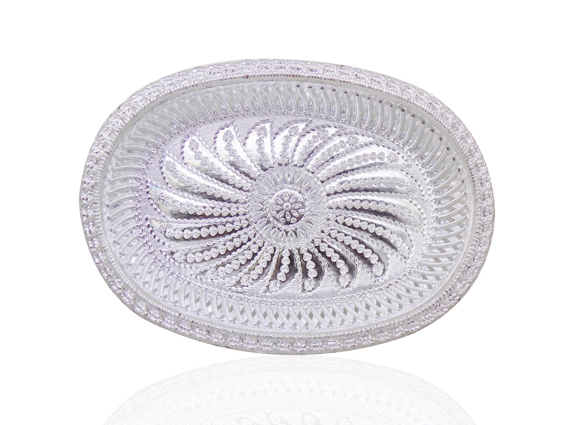 DeoDap Multipurpose Silver Foiled Oval Shape Decorative Dry Fruit & Mouth Freshener Serving & Storage Tray / Plate