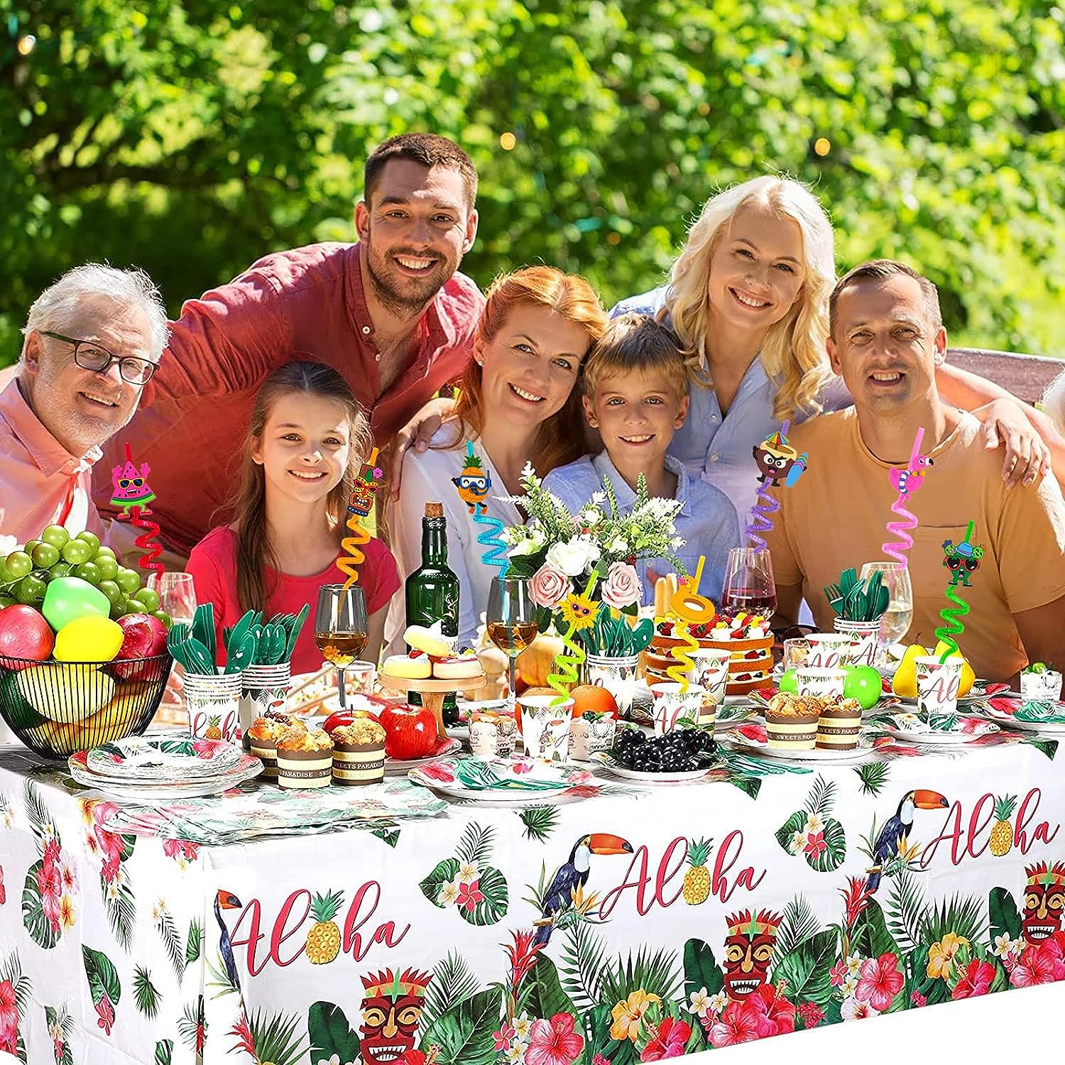 5925 Reusable straws are perfect for kids' summer parties. Plastic Straws Reusable Drinking Straws Decoration for Kids Birthday Party Favors or other summer celebration (4 pc Set / Mix design)