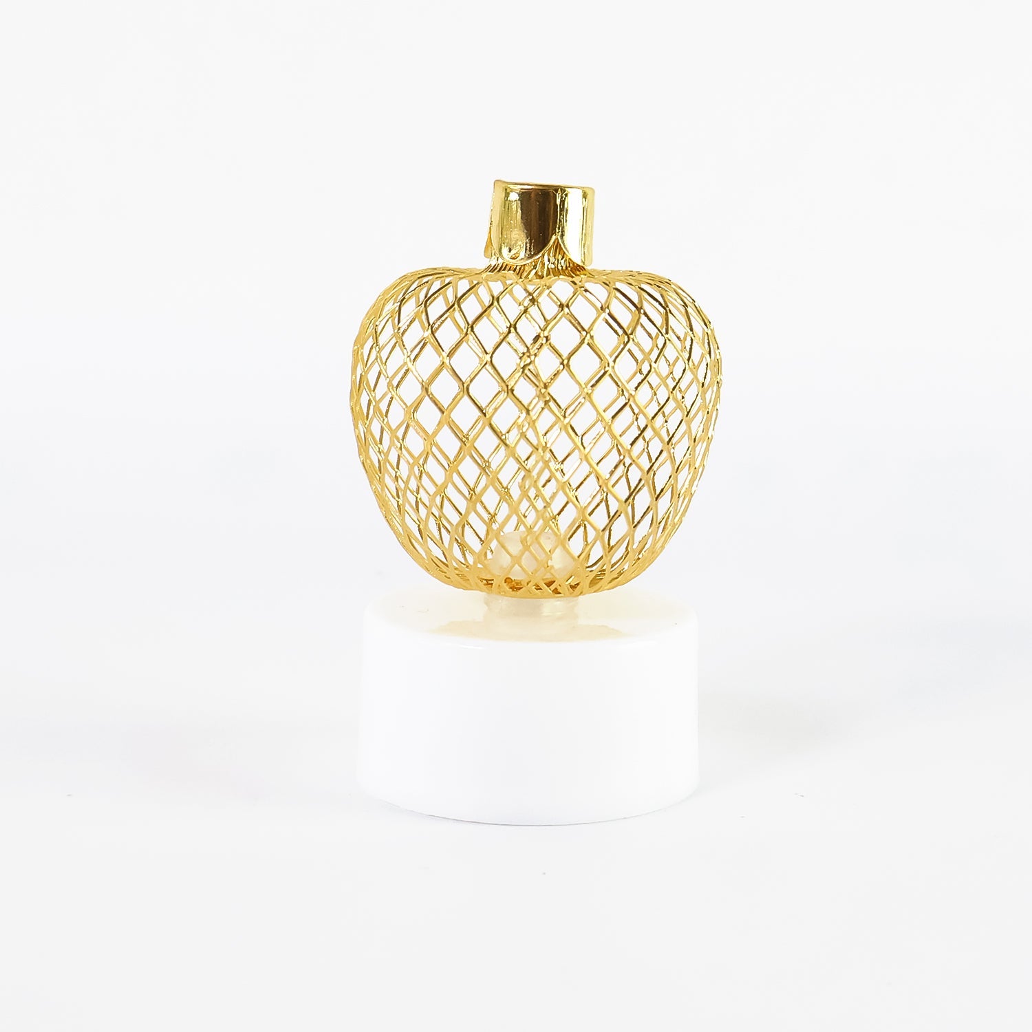 Design: Golden apple-shaped mesh cover with tealight base