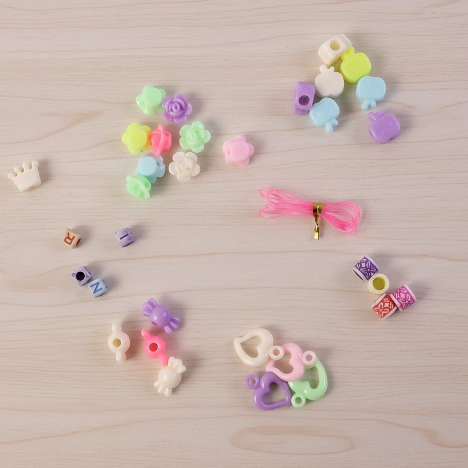 Contents: Mixed decorative beads, alphabet beads, charms, and string