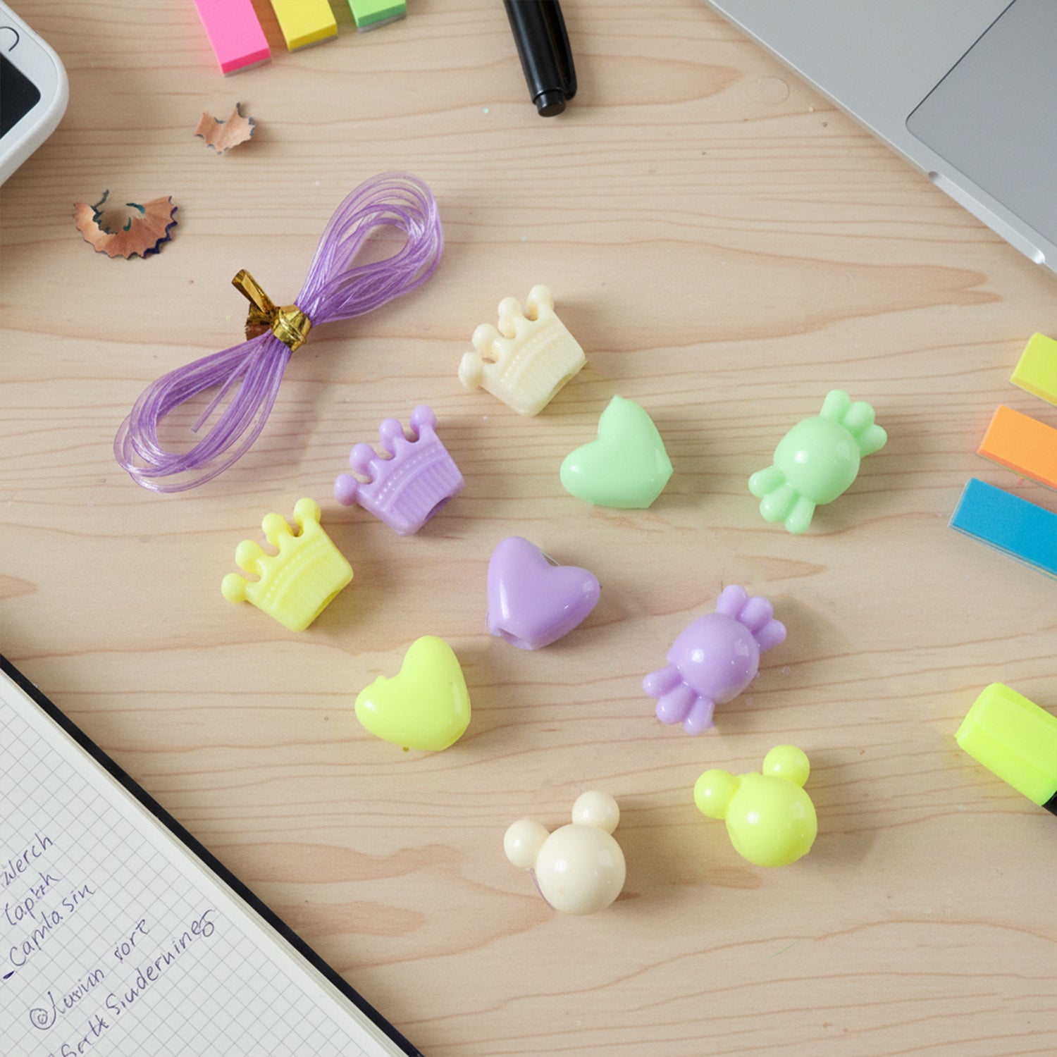 Contents: Assorted decorative beads, alphabet beads, charms, and elastic thread