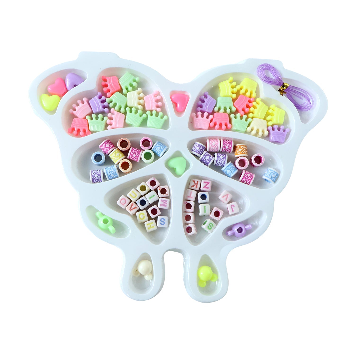 DIY Fashion Beading Jewellery Making Kit with Butterfly-Shaped Organizer Tray, Alphabet Beads, Crown Beads, Decorative Charms & Elastic Thread for Handmade Bracelets and Necklaces – Creative Craft Set for Kids (1 Set)