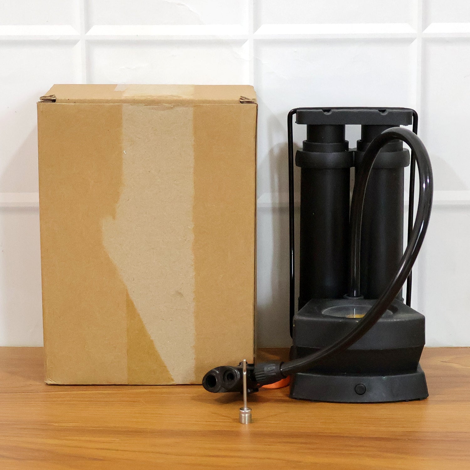 This double cylinder foot air pump is designed to provide efficient and quick inflation for tires and sports equipment. The sturdy manual foot-operated design allows users to inflate items easily without electricity, making it highly convenient for home, travel, and emergency use. Equipped with a built-in pressure gauge, it helps monitor air pressure accurately while inflating. The dual-cylinder mechanism improves pumping efficiency and reduces effort, allowing faster inflation compared to single-cylinder pumps. Compact and portable, this air pump is a practical tool for vehicles, bicycles, and sports gear.