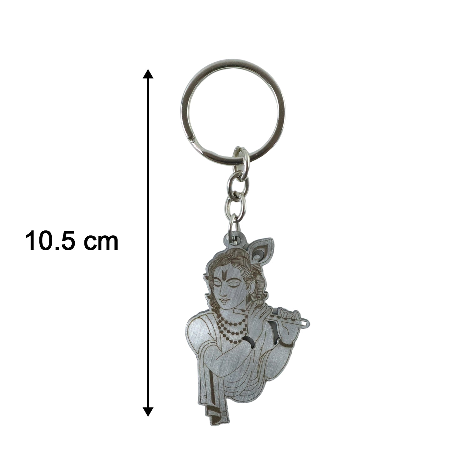 This beautifully designed metal keychain features an engraved image of Lord Krishna playing the flute, symbolizing peace, love, and devotion. Crafted with a premium metal finish, it offers durability along with a stylish and meaningful appearance. The sturdy key ring ensures secure attachment of keys, while the lightweight structure makes it easy to carry anywhere. Perfect for adding a spiritual touch to your daily essentials, this keychain is both functional and decorative. An ideal accessory for personal use or gifting.