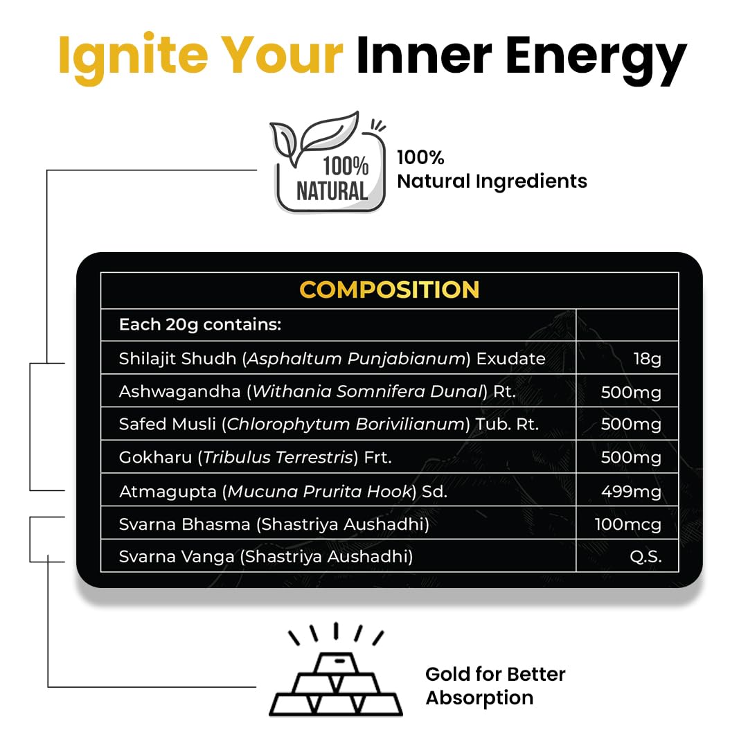 - Performance Enhancer: Designed to support your daily activities, Shilajit Gold Resin helps boost your stamina for better performance. Pure Himalayan Shilajit: Sourced from the pristine Himalayas, ensuring high quality.