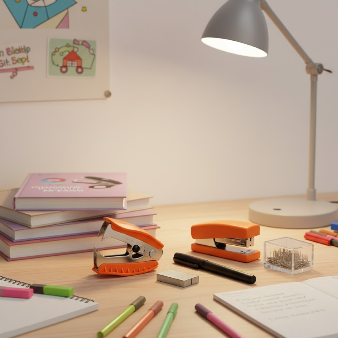 The Kangaro 5-in-1 Stationery Gift Set is a versatile and practical solution for both personal and professional use. Designed with premium quality materials and ergonomic designs, this set includes all essential desk tools in one pack – a stapler, box of staples, staple remover, tape dispenser, and a 2-hole punch. Ideal for students, office professionals, and home use, this gift set provides convenience, durability, and efficiency for everyday paperwork management. Its bright, stylish design also makes it a perfect gifting choice for students, colleagues, and business professionals.