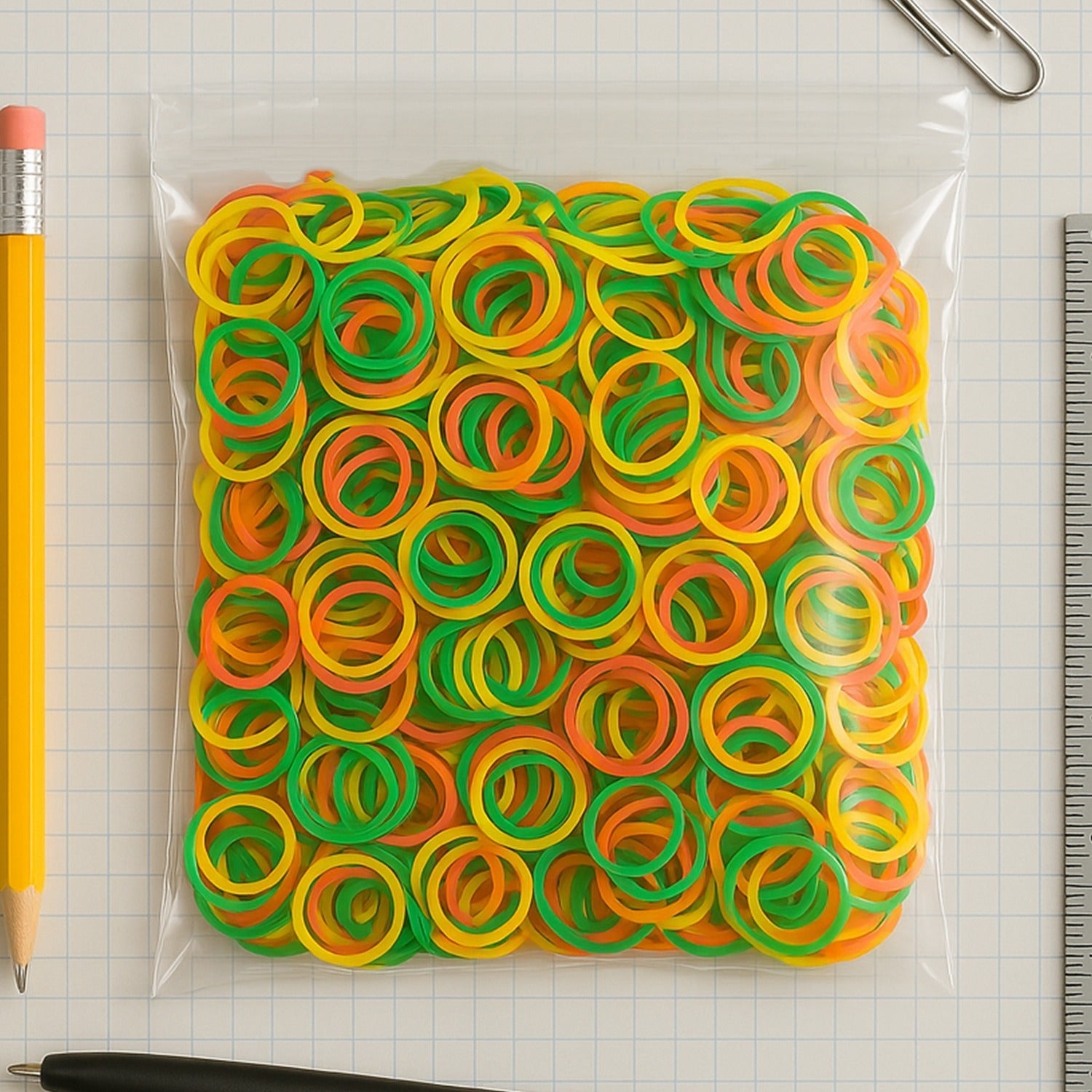 RUBBER BAND FOR OFFICE/HOME AND KITCHEN ACCESSORIES ITEM PRODUCTS, ELASTIC RUBBER BANDS, FLEXIBLE REUSABLE NYLON ELASTIC UNBREAKABLE, FOR STATIONERY, SCHOOL MULTICOLOR