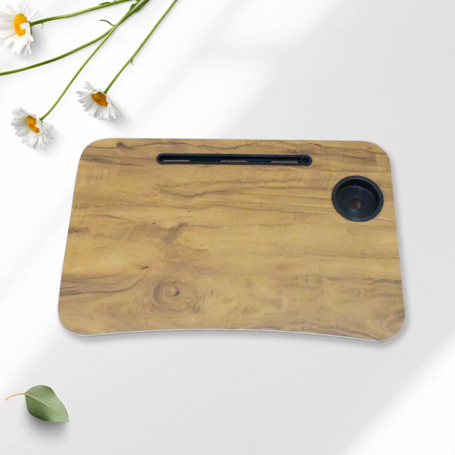 - Made of sturdy MDF solid board and imported decorative upper, our laptop desk is durable and scratch-resistant. Besides, it has well-coated metal legs and ergonomic round edges that maintain stability.