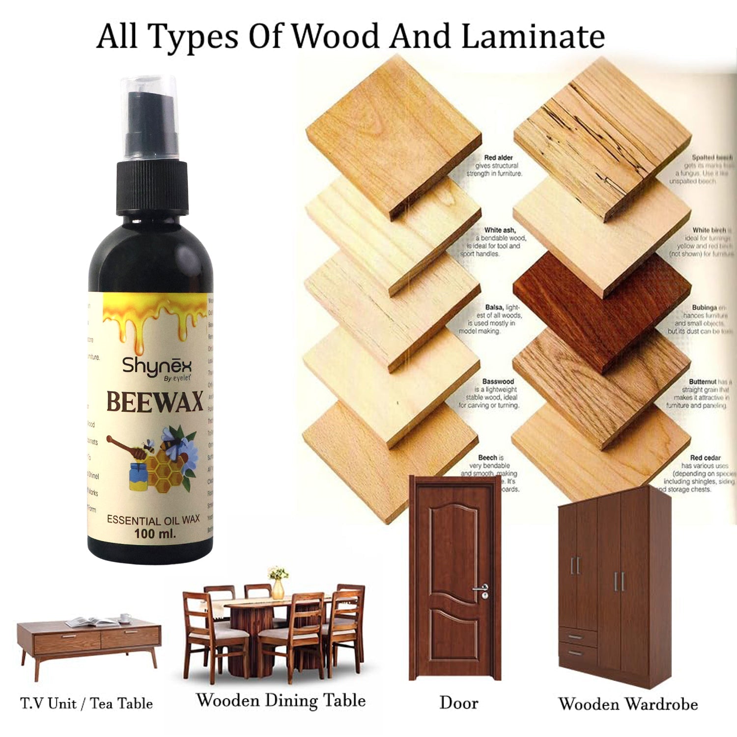 Shynex Bee Wax Essential Oil Spray | 100 ML | Natural Wax Spray for Wood, Furniture, and Leather Care | Multi-Purpose Cleaner, Polisher, and Protector | Non-Toxic, Eco-Friendly Formula