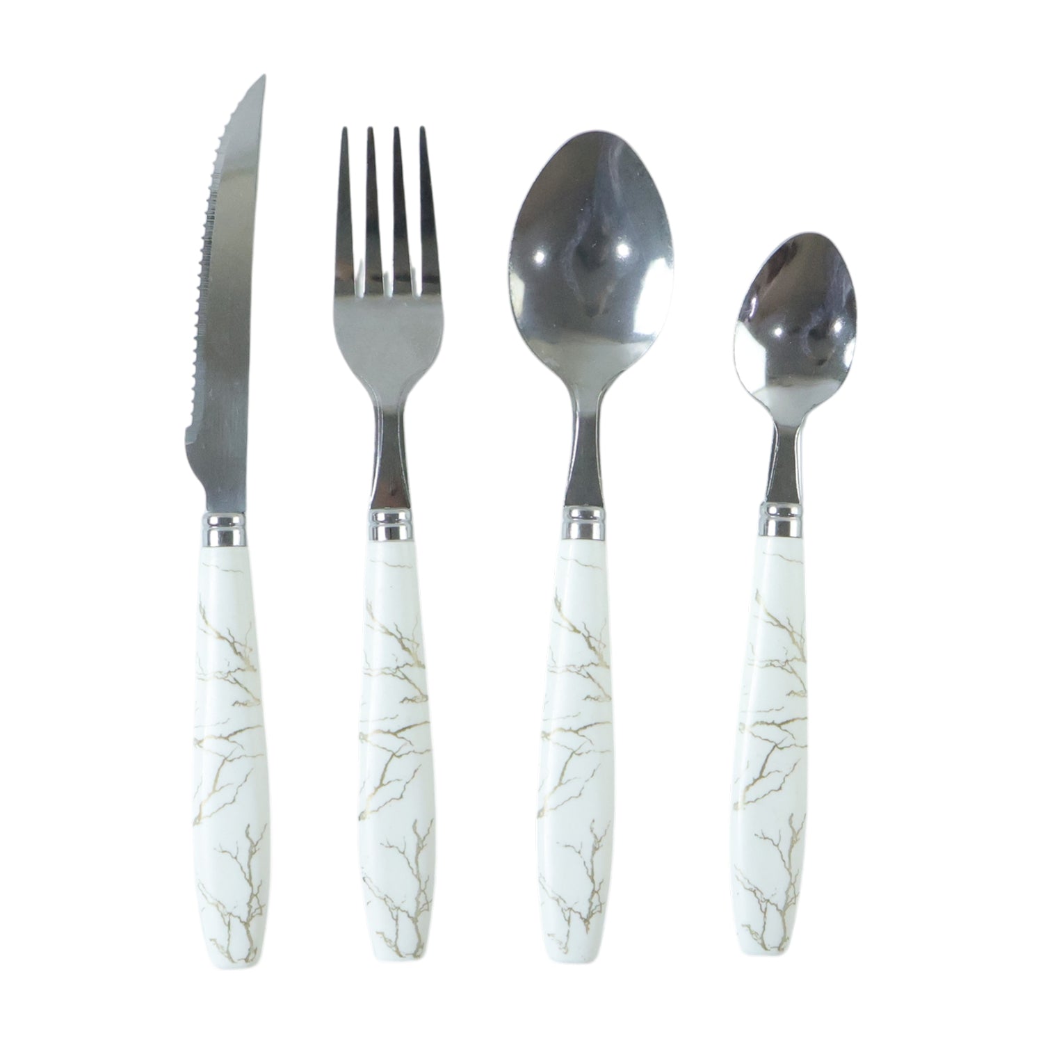 Stainless Steel Cutlery Set with Marble Design Handle – 1 Dinner Spoon, 1 Tea Spoon, 1 Fork and 1 Knife for Home, Kitchen and Dining Use (4 Pc Set)