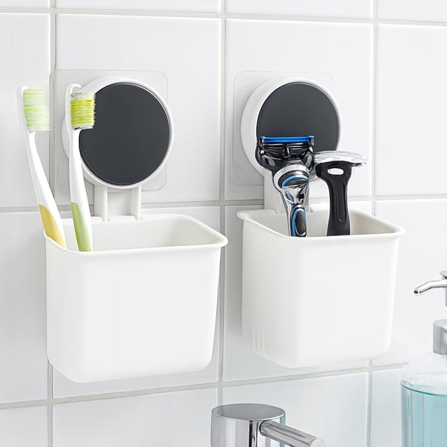 This wall mounted plastic toothbrush holder is designed to keep daily-use items neatly organized while freeing up valuable counter space. The wall mount design helps maintain a clean and hygienic environment by keeping toothbrushes and small accessories elevated from wet surfaces. Its open-top structure allows easy access and proper airflow, supporting better drying and cleanliness. Suitable for bathrooms as well as kitchen counter organization, this holder offers flexible usage for storing small essentials. With simple adhesive installation, it provides a practical and clutter-free storage solution for everyday household needs.